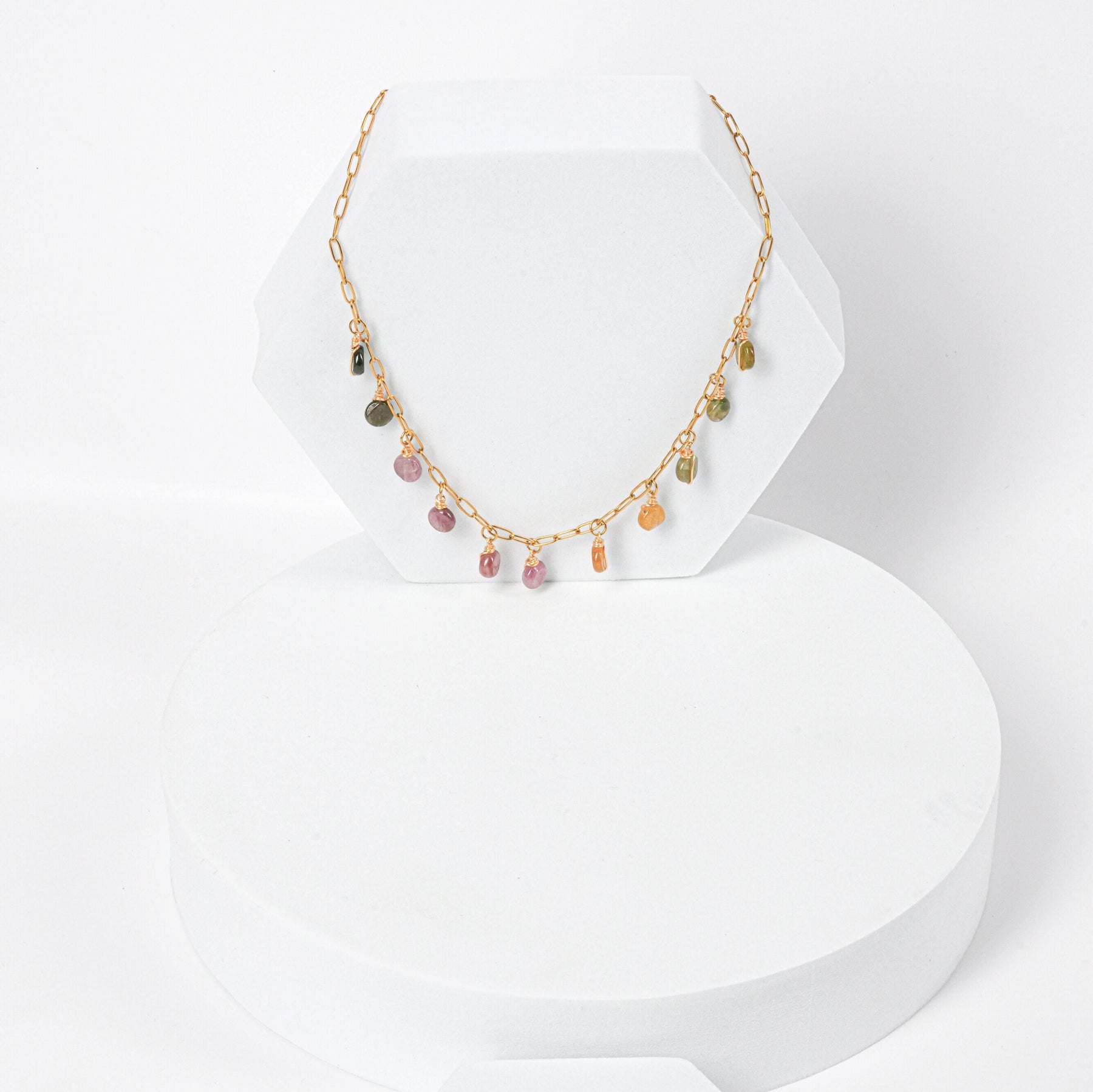 NAM003 Collana in acciaio chirurgico dorato con tormaline watermelon
