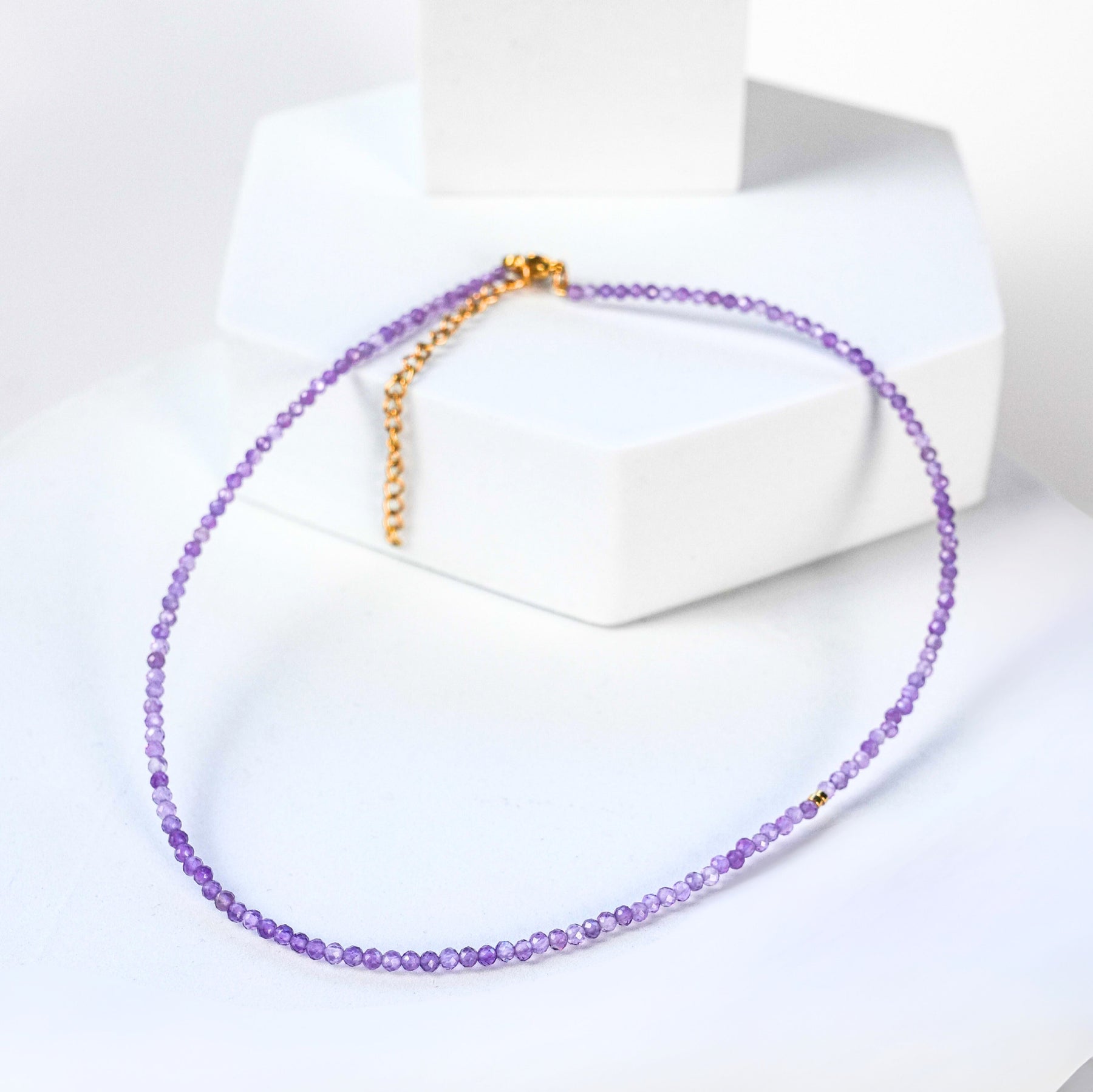 NAM025 Girocollo in acciaio chirurgico dorato e ametista
