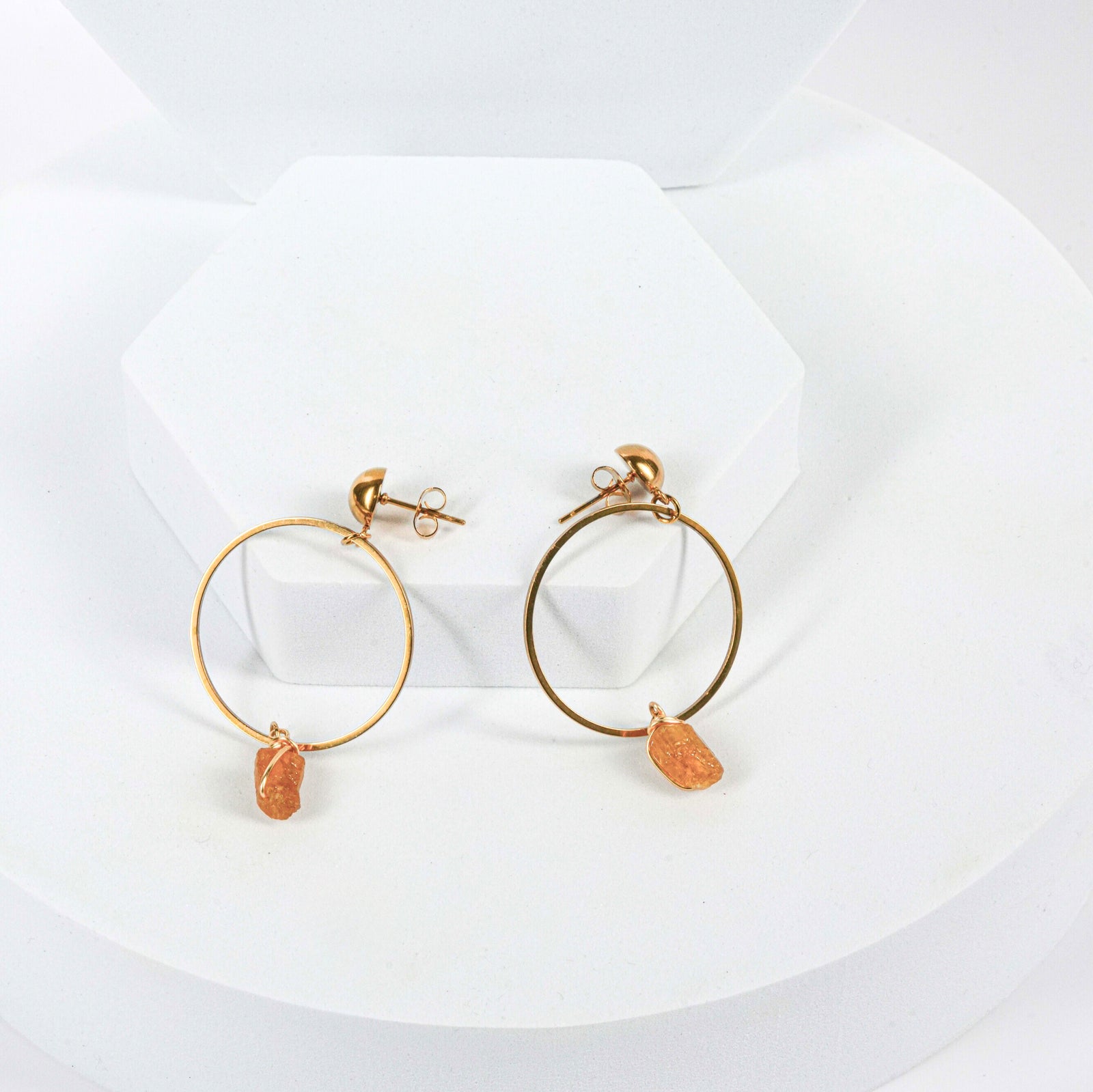 NAM017 Orecchino in acciaio chirurgico dorato cerchio con citrino grezzo